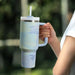 Upgrade your travel experience with our 40 oz Iced Tumbler with Handle Straw Lid. Order yours today!