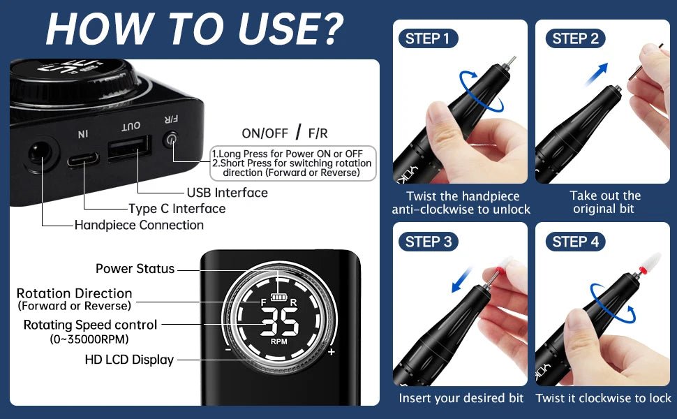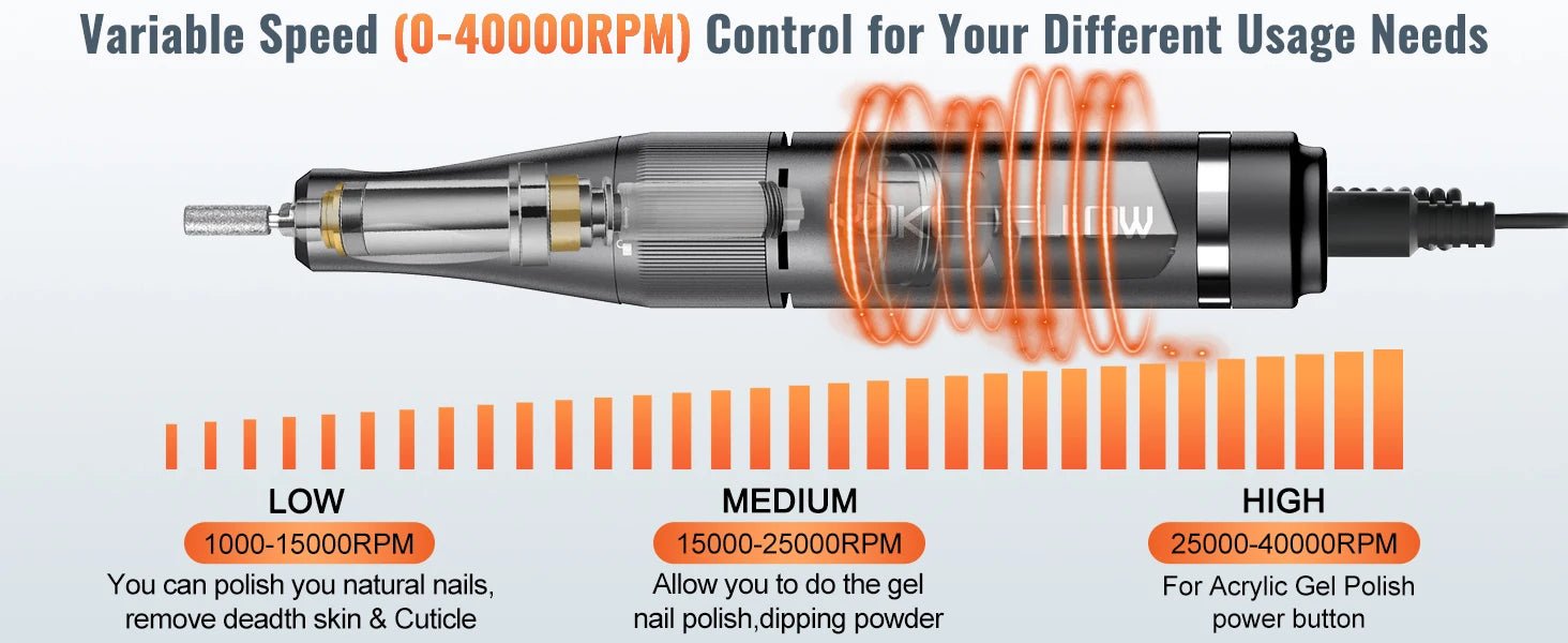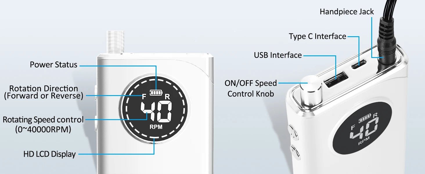 Don't settle for subpar manicures, upgrade to the 40000RPM Electric Nail Drill Manicure Machine and enjoy professional results anytime, anywhere. Order now and take your nail game to the next level!