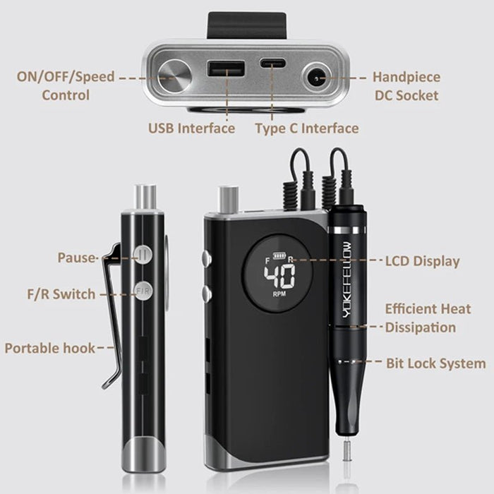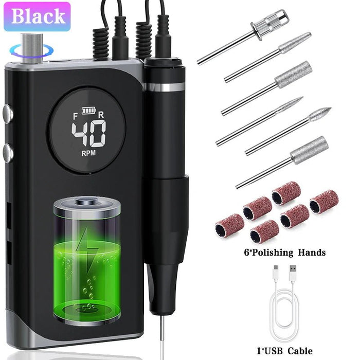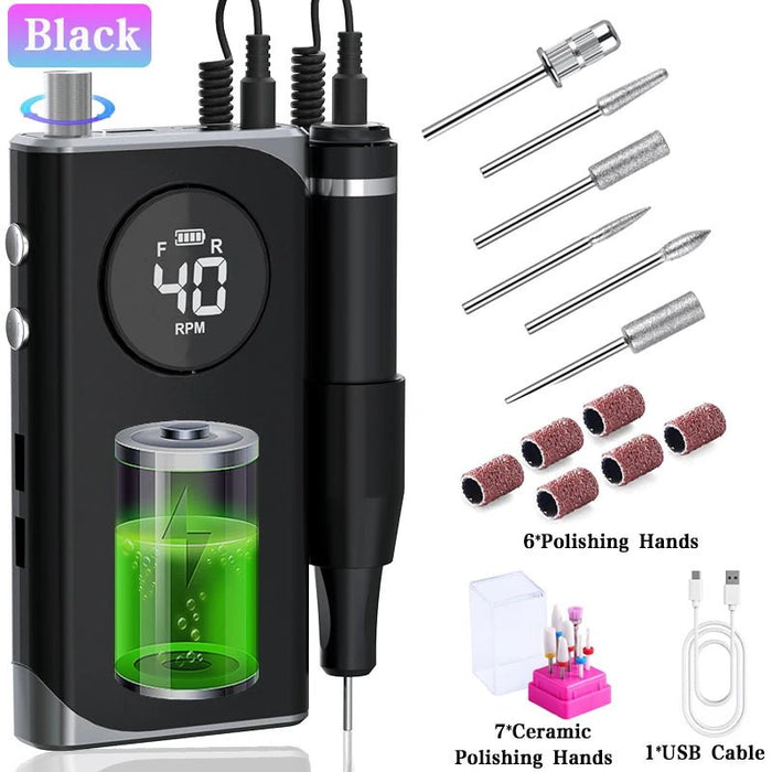 40000RPM ELECTRIC NAIL DRILL MANICURE MACHINE FOR CUTTING UV POLISH GEL 2023NEW RECHARGEABLE PORTABLE ELECTRIC NAIL FILE TOOLS