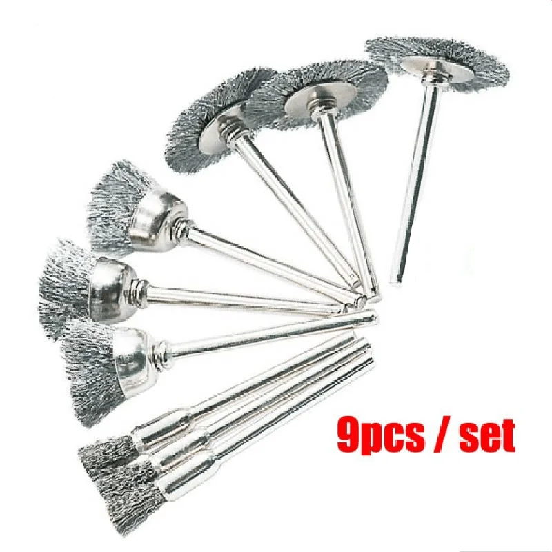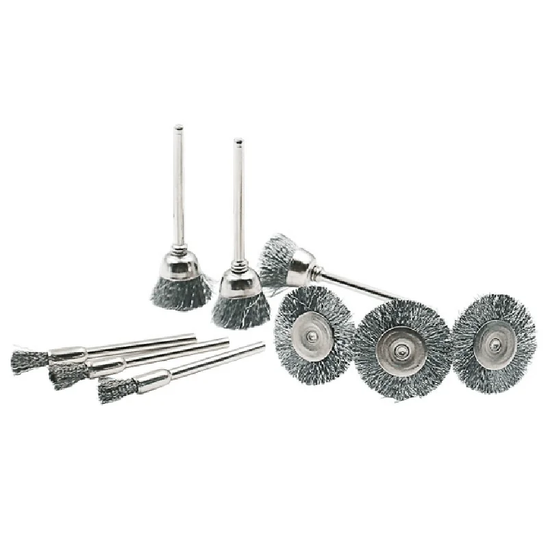 - Complete Set: Includes 9 different mini steel wire brushes to tackle a variety of cleaning and polishing jobs.