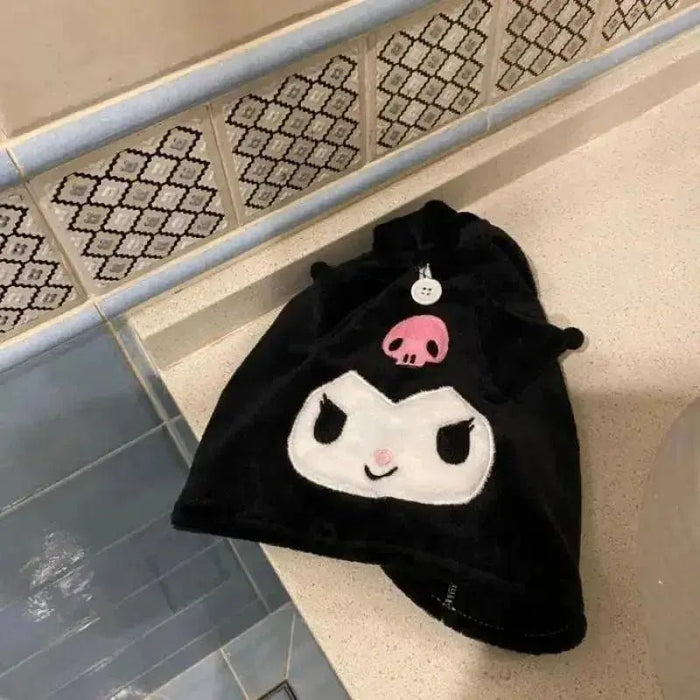 Featuring the playful Kuromi character, this hair drying cap adds a touch of charm to your bathing experience. The cheerful colors and soft, plush fabric make this wrap not just practical, but also a delightful accessory for any girl or woman who loves kawaii culture.