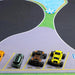 The mat features a turbo racing design, complete with loops, bends, and curves to create a thrilling and challenging race track. It also includes graphics such as skid marks and arrows to enhance the realistic racing experience. So whether you're hosting a race with friends or practicing your skills solo, this mat will take your mini car racing to the next level.