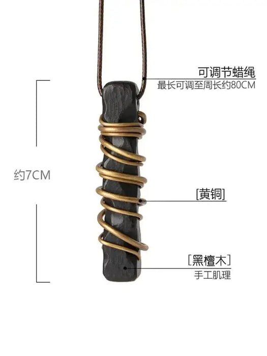 Original Design Ebony Wood Pendant Male Temperament Retro Chinese Ethnic Style Necklace Woolen Chain Female Jewelry New Product