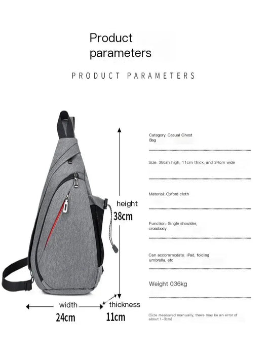 Elevate your repertoire with our Oxford Cloth Chest Bag—a stylish, durable, and multifaceted companion crafted to keep pace with your active life.