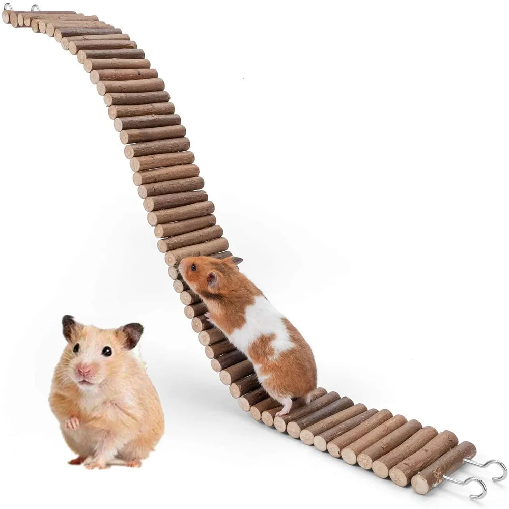 Small Pet Training Wooden Toys Hamster Wooden Ladder Fence 2 in 1 Bird Ladder Chinchilla Natural Landscaping Supplies